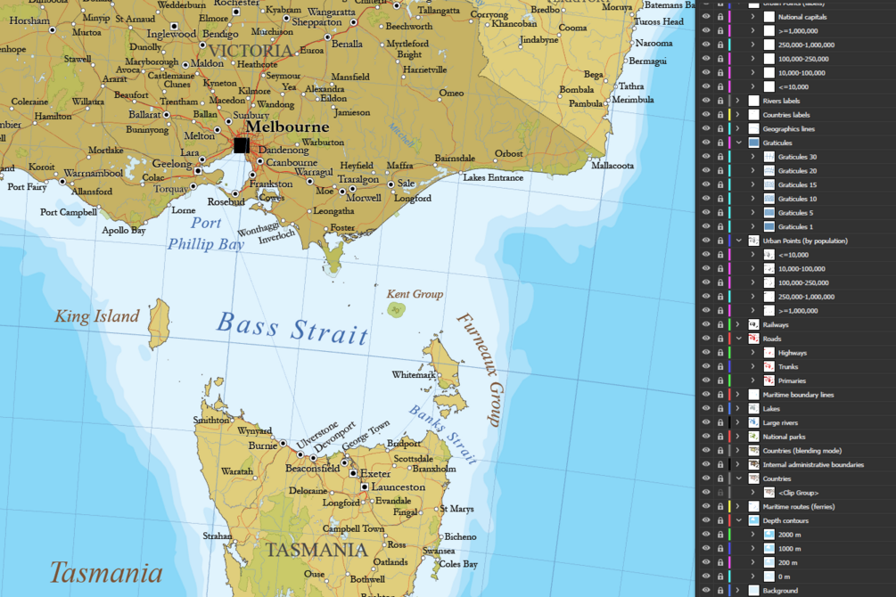 Large scale Australasia political map multi-layered in editable vector format. Highly detailed, ideal for illustrations, prints and multimedia projects. 100% editable including font text for ease of use.