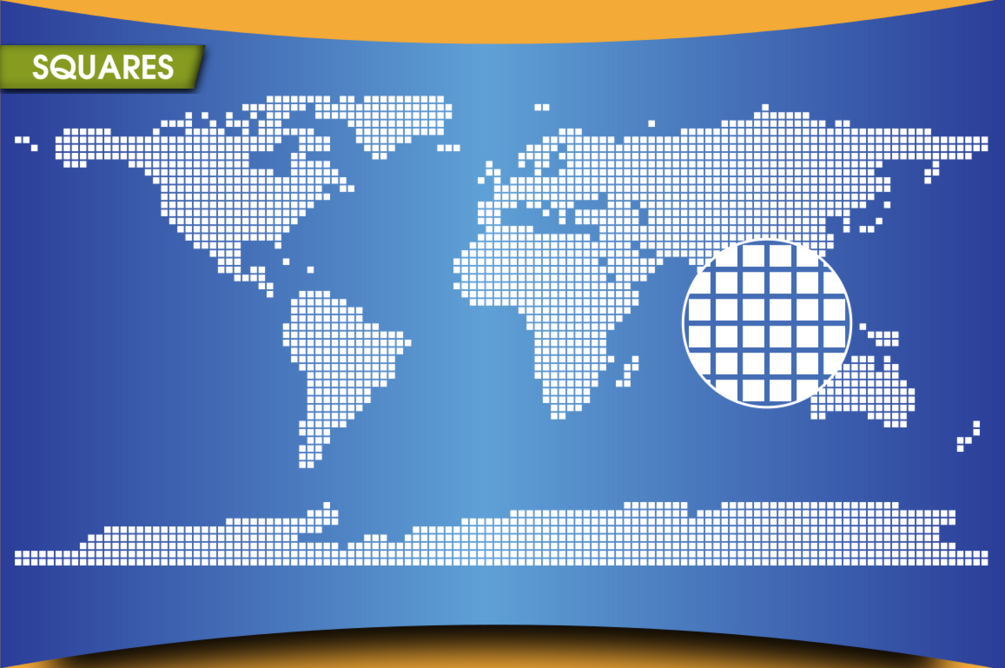 - 8 dotted map in 4 shapes: dots (circles), squares, hexagons and diamonds.