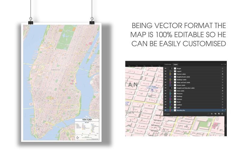 Fully editable layered vector map of Manhattan. Easy to customize, ideal for illustrations, prints and multimedia projects.