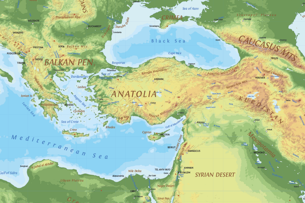 It contains the major physical features of the planet with their labels. Texts placed manually depending on the orientation of the elements.