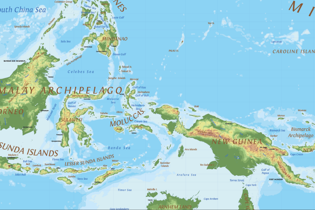 Editable vector map of the whole world in a relief design. Provides physical details, land elevations, minor islands, rivers, natural and artificial lakes and others features type. The map is fully vector, including elevation ranges represented by hypsometric tints.